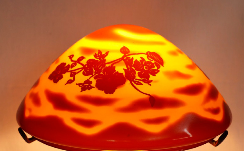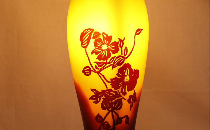 高級色被ガラス仕様のアールヌーボー調ランプシェード【デザイン=fancyーflower】手作り ガラス ランプ 色被ガラス