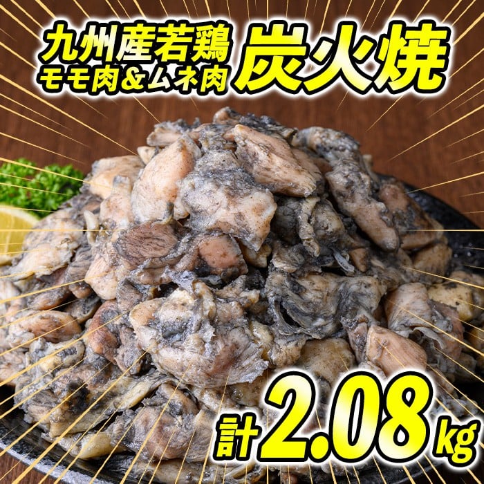 - s675 【B】九州産若鶏炭火焼《もも&むねミックス》(計2.08kg・130g×16P) 鹿児島 国産 九州産 鶏肉 若鶏 モモ肉 ムネ肉 ミックス 炭火焼き おかず 惣菜 おつまみ 【江夏商事】