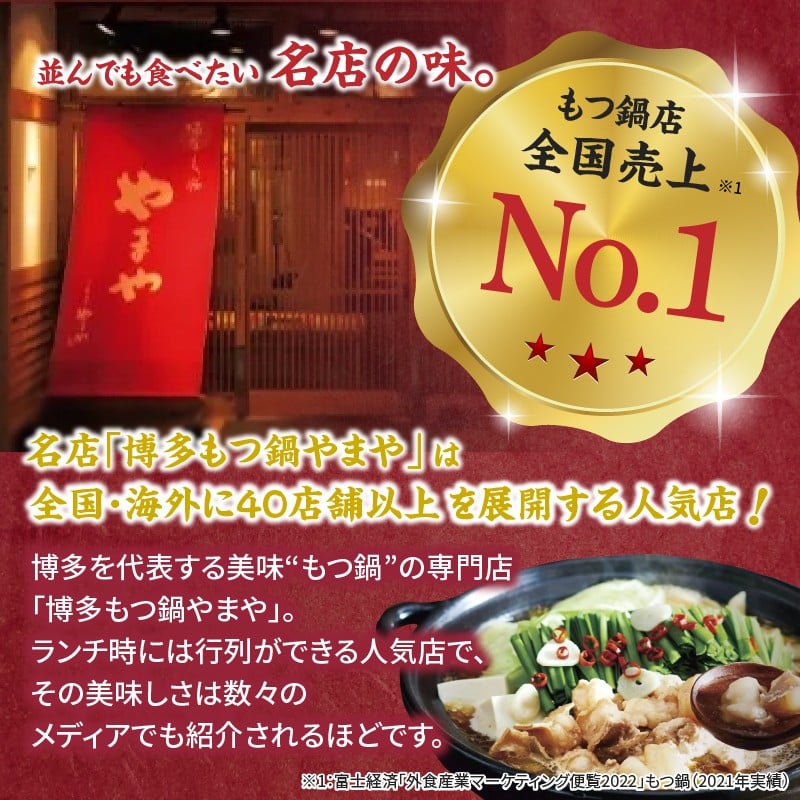 - やまや 博多もつ鍋セット あごだし醤油味(3~4人前) もつ鍋 国産 牛もつ モツ 博多 やまや スープ付き 麺付き 冷凍 福岡県 八女市