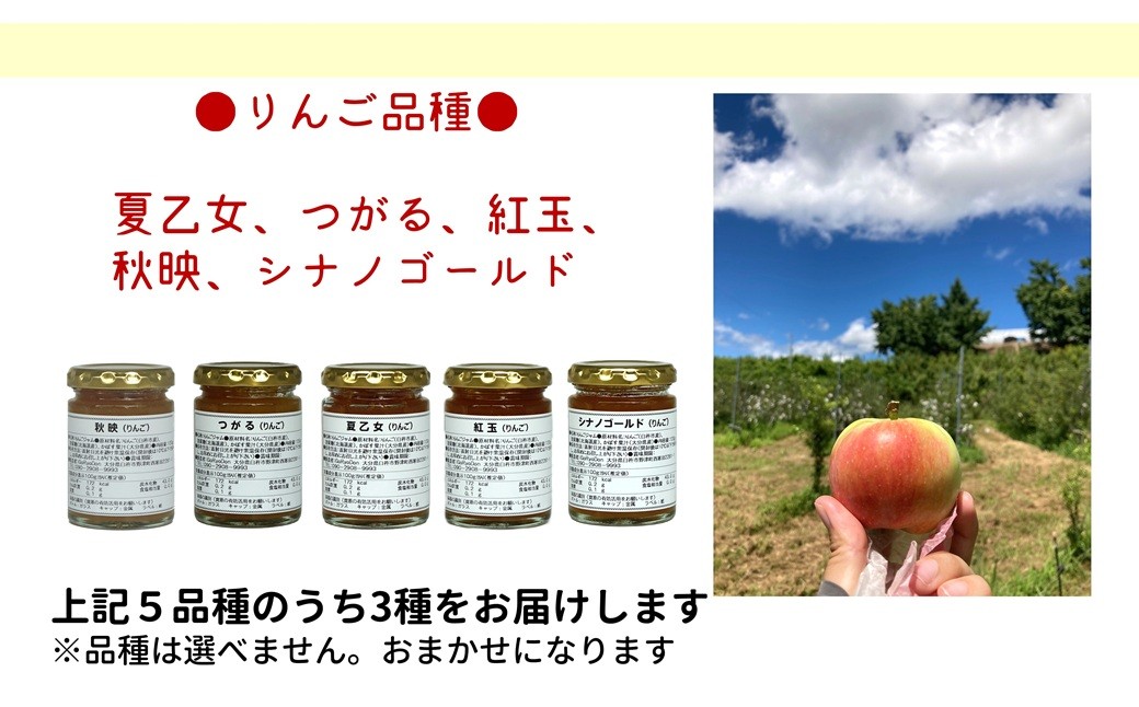 - 品種で食べ比べできるりんごジャム(ギフトボックス付)120g×3本 果実から手づくり 化学合成農薬不使用