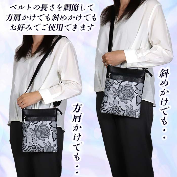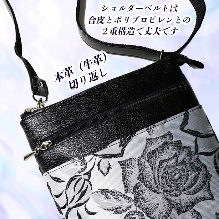 ローズ柄 ブラック ポシェット BR-69 縦型 日本製 ミニショルダーバッグ レディース / まちづくり観光振興機構 傘生地 ブロケード織り 旅行 ウォーキング 防水 奈良県 田原本町