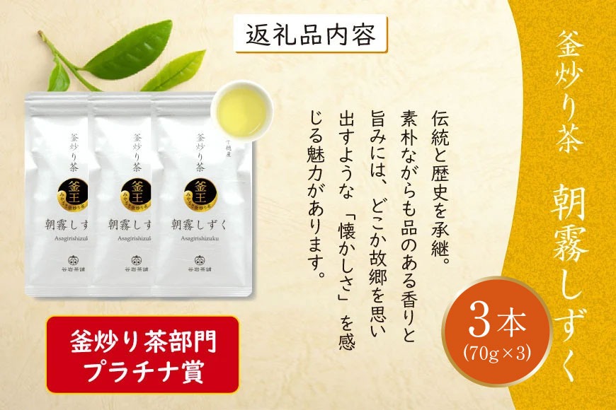 - お茶 緑茶 釜炒り茶 朝霧しずく 70g×3本 [谷岩茶舗 宮崎県 日向市 452061609] セット 緑茶 やぶきた プラチナ賞 日本茶