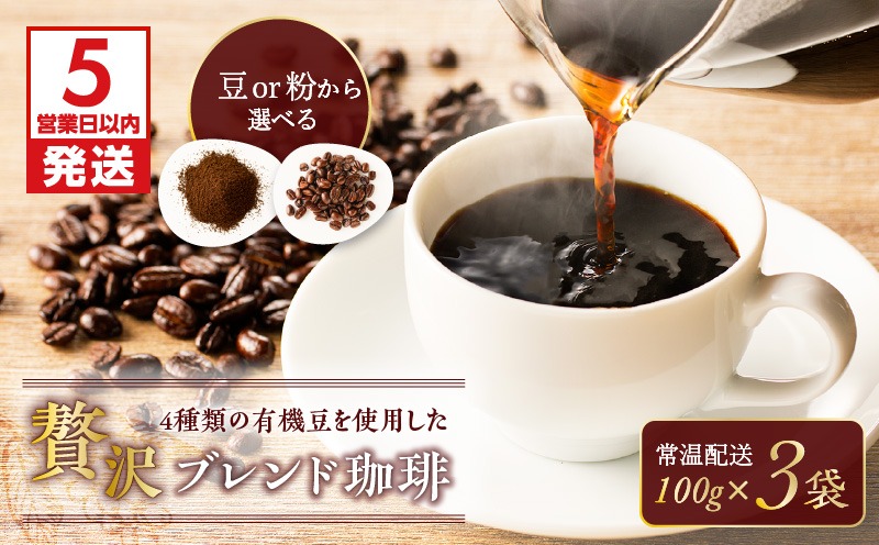【5営業日以内に発送】4種類の有機豆を使用した贅沢ブレンド珈琲 K186-001