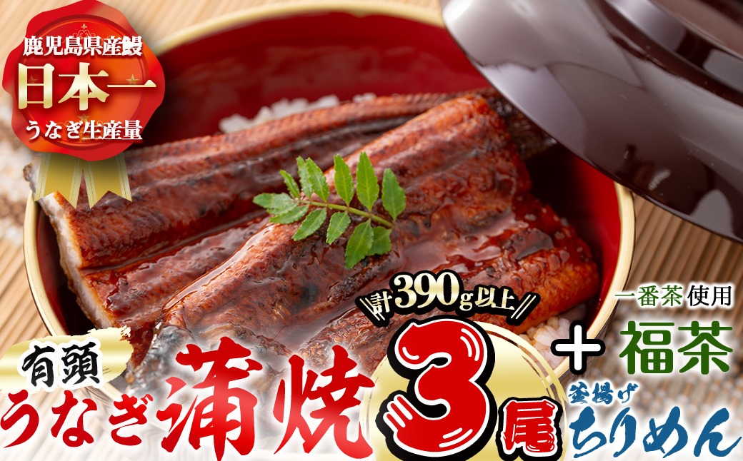 - 極うなぎ蒲焼130g以上×3尾(計390g以上)+釜揚げちりめん100g+福茶100g b4-015