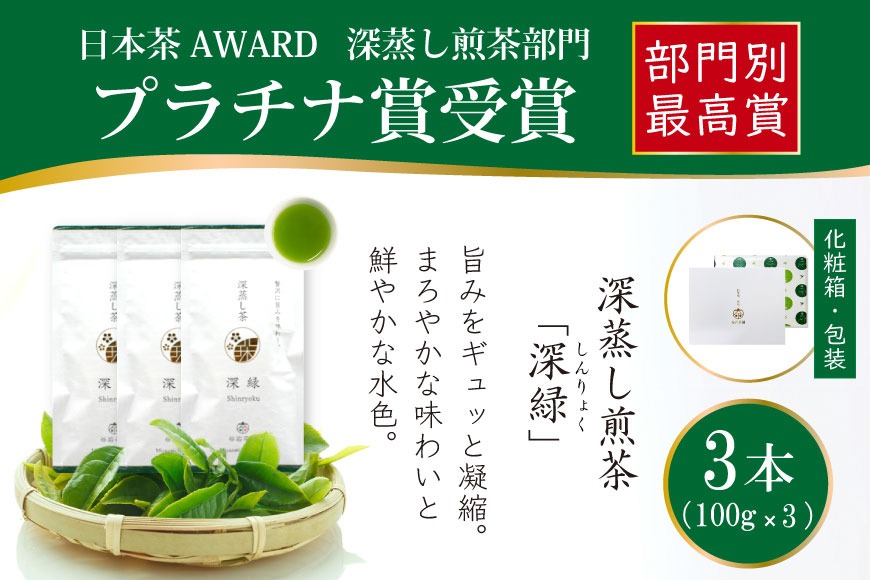 - お茶 緑茶 深蒸し煎茶 深緑 100g×3本 [谷岩茶舗 宮崎県 日向市 452061606] セット 小分け 茶葉 プラチナ賞