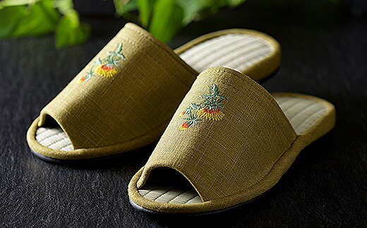 - 【ふるさと納税】草花 ムラ染め スリッパ( 2足セット ) Mサイズ 草色 い草 畳 紅花 刺繍 和風 贈り物 ギフトお祝い 誕生日 敬老の日 履きやすい 脱げにくい 前あき 素足 暑さ 対策 さっぱり 山形 河北町 紅花の里 【河内スリッパ】