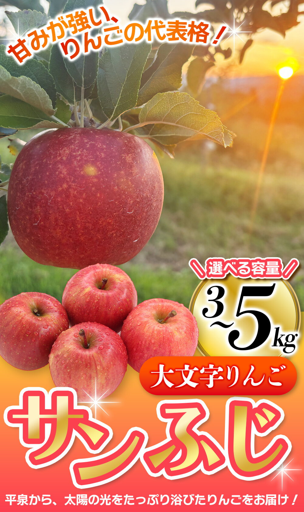 - 【ふるさと納税】人気No.1!りんご サンふじ 3kg 5kg 大文字りんご園 12月上旬~1月上旬より順次発送 / 蜜 蜜入り 国産 樹上完熟 幻のりんご 林檎 果物 くだもの フルーツ 産地直送 予約 送料無料