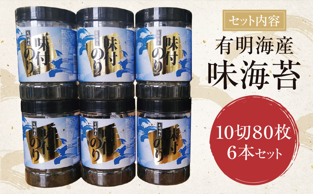 - 【ふるさと納税】 有明海苔 味海苔 大丸ボトル 10切80枚 6本セット 味のり 卓上ボトル 有明海苔 手巻き寿司 ご飯のお供 福岡県 送料無料