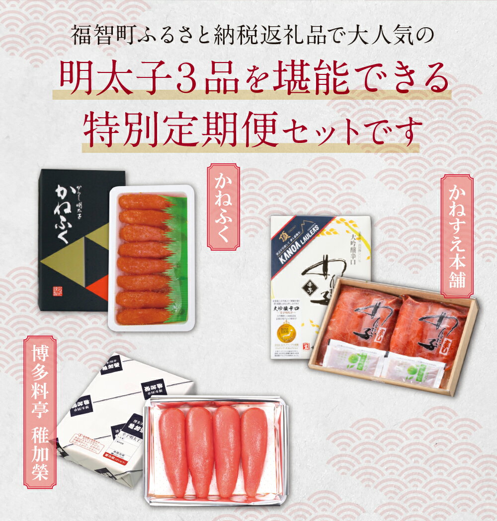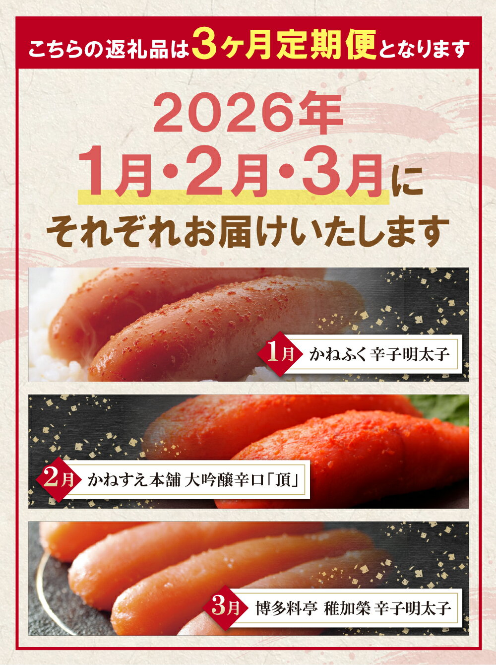 【ふるさと納税】 福智町限定 明太子食べ比べ定期便(毎月・年3回)2026年 お届け 福岡 福智町 福智 辛子明太子 めんたいこ めんたい たらこ 無着色 海産物 定期便 3回 食べ比べ お試し 稚加榮 かねすえ かねふく 辛子明太子 送料無料