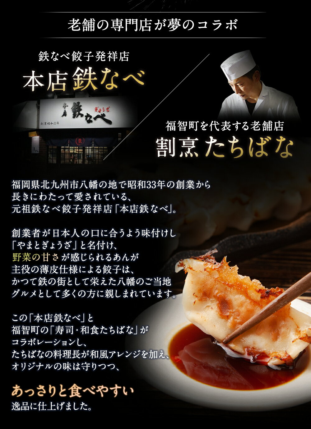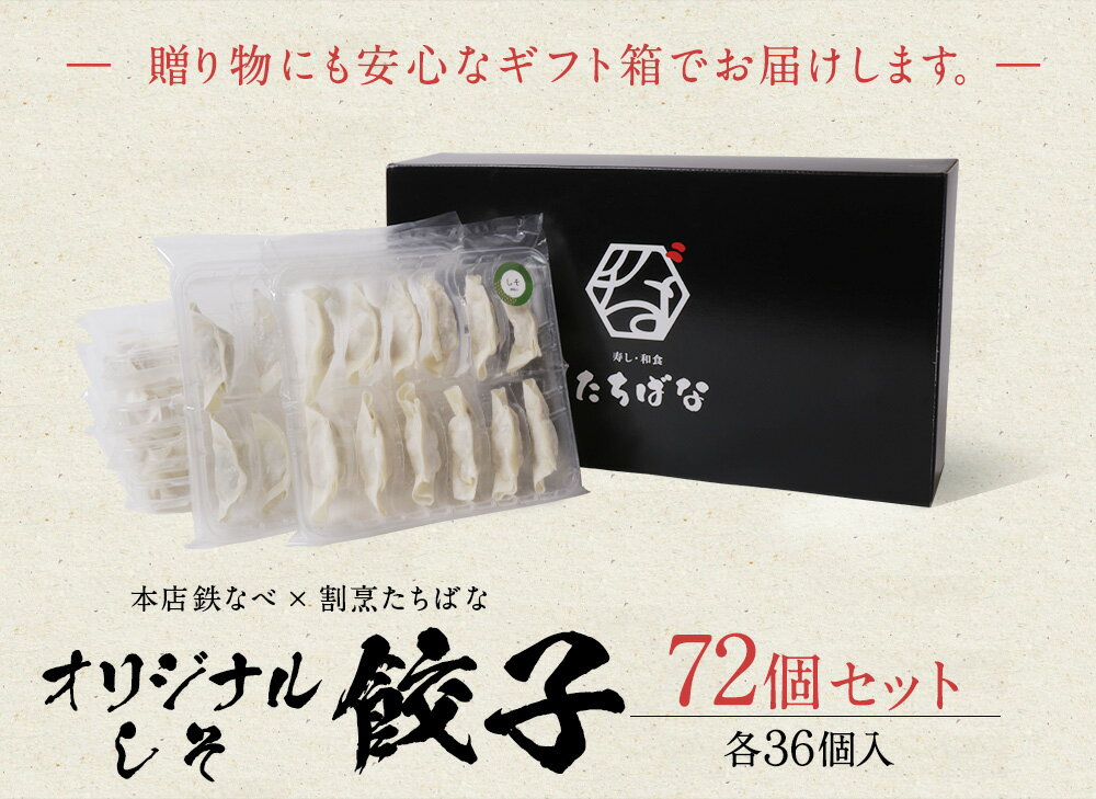 - 【ふるさと納税】本店鉄なべ×割烹たちばな 餃子セット72個(オリジナル・しそ各36個) 一口 老舗 割烹 名店 ご当地グルメ 薄皮 送料無料