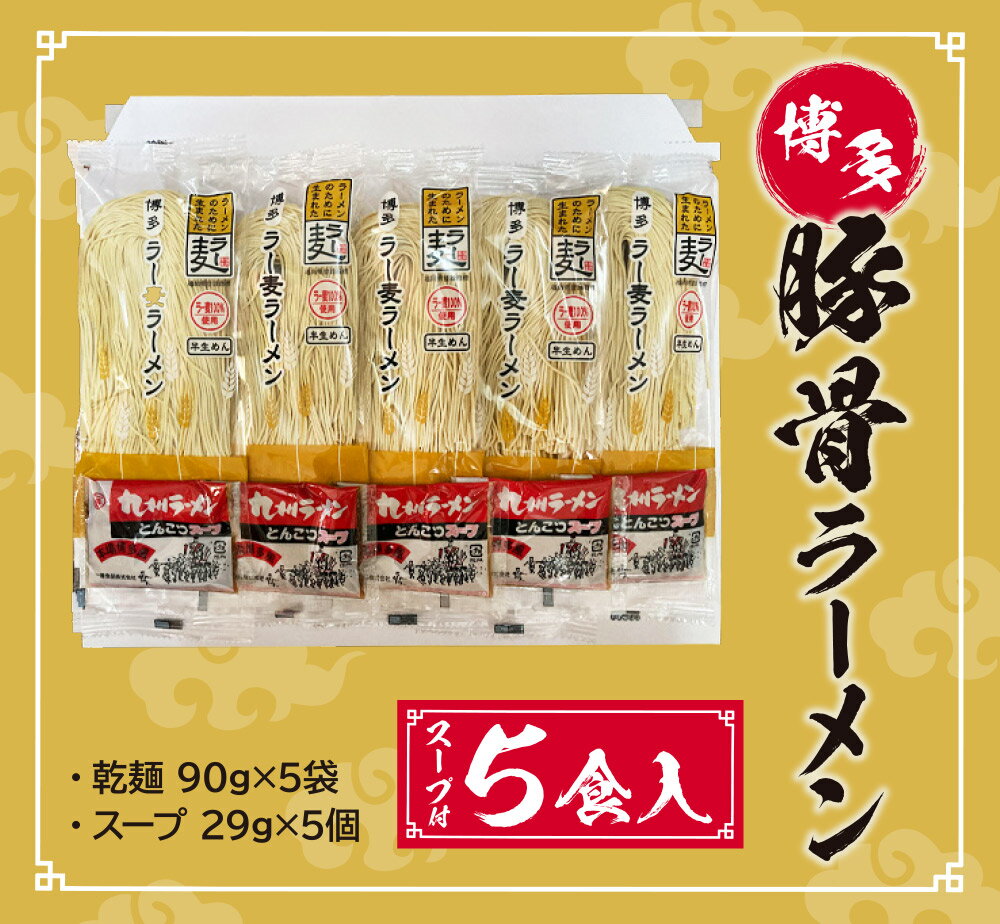 - 【ふるさと納税】博多とんこつラーメン5食 ラー麦使用 とんこつ スープ付き 福岡県 アウトドア キャンプ お土産 プチギフト お試し メール便 送料無料