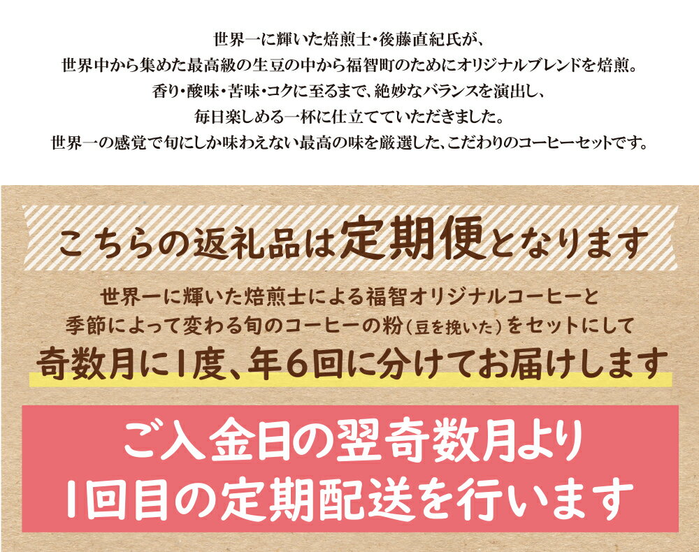 - 【ふるさと納税】【粉】豆香洞 福智ブレンド&旬のこだわりコーヒー定期便(奇数月・年6回)コーヒー 珈琲 ドリンク 飲料 ブレンド