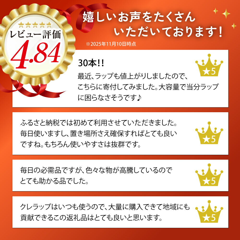 NEWクレラップ 50m 2種セット(レギュラー、ミニ) 計4本 クレラップ ラップ 日用品 新生活 準備 クレラップミニ 30cm 22cm 50m 30センチ 22センチ 50メートル お徳用 使いやすい 切りやすい 引き出しやすい パッと切れる キッチン用品 38-F