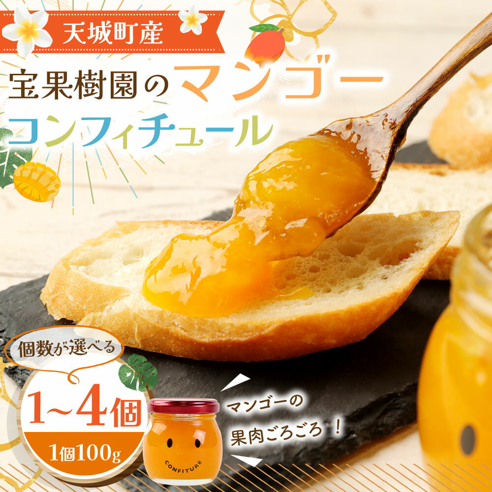 【ふるさと納税】宝果樹園のマンゴーコンフィチュール <個数が選べる> 1個~4個 セット 1個あたり100g 果肉入り 完熟 果物 フルーツ ジャム 加工品 瓶 朝食 ギフト 贈り物 国産 九州 鹿児島県 天城町産 送料無料