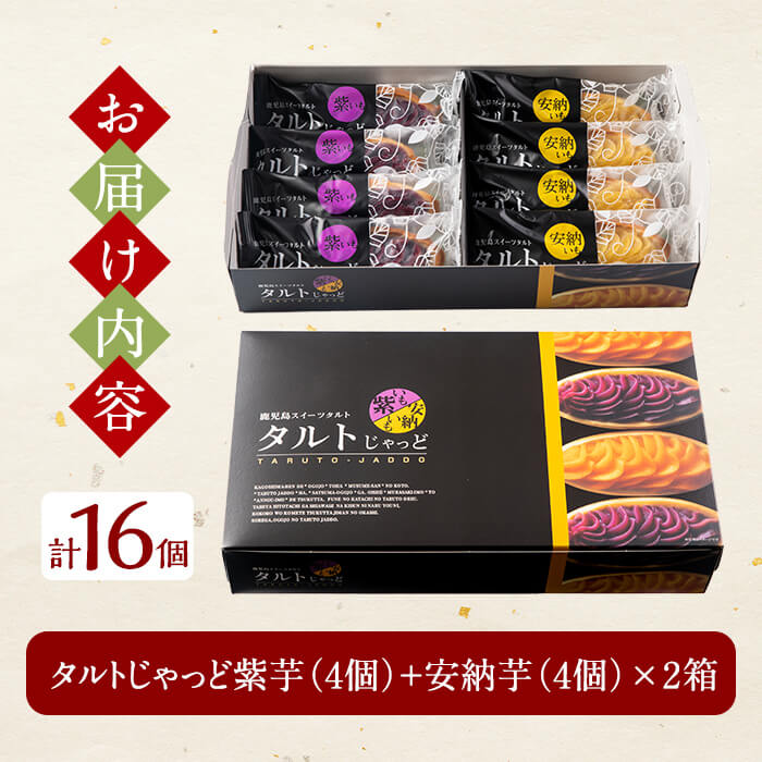 - 【ふるさと納税】鹿児島のスイーツタルト・タルトじゃっど(各8個入×2箱・計16個)なめらかな紫芋と安納芋のスイーツを2種セットでお届け【徳重製菓とらや】