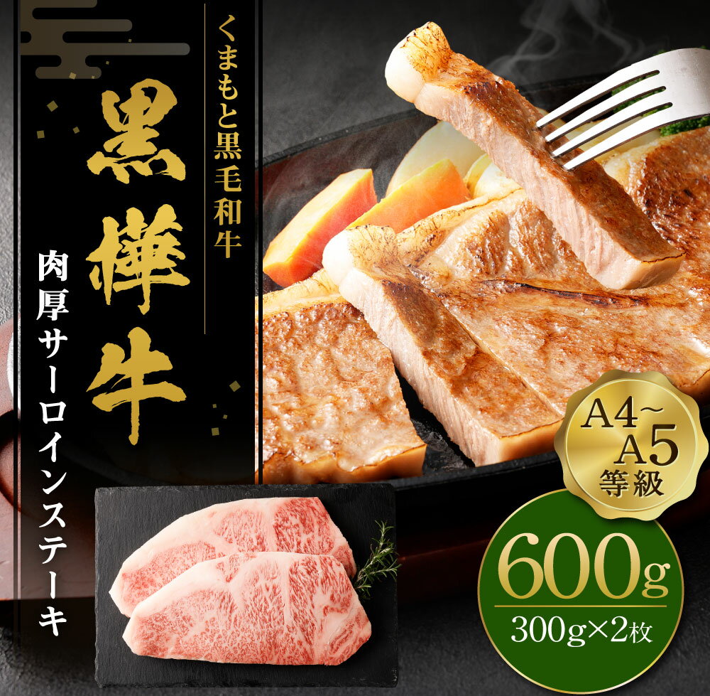 【ふるさと納税】くまもと黒毛和牛 黒樺牛 A4〜A5等級 肉厚サーロインステーキ 300g×2枚 合計600g 特大 牛肉 牛 お肉 ステーキ 黒毛和牛 国産 九州産 熊本県産 冷凍 送料無料