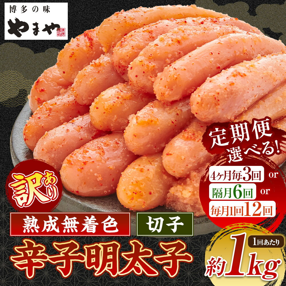 - 【ふるさと納税】<選べる定期便>【訳あり】やまや 熟成無着色辛子明太子 切子 1回あたり約1kg 4ヶ月毎3回 / 隔月6回 / 1ヶ月毎12回 めんたいこ すけとうだら スケトウダラ 魚卵 魚介類 切れ子 家庭用 ご飯のお供 ごはんのお供 おつまみ 冷凍 福岡県 うきは市 送料無料