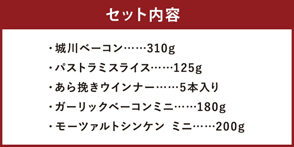 - 【ふるさと納税】『ハーベスト』オリジナルセット 5種 城川ベーコン パストラミスライス あら挽きウインナー ガーリックベーコン モーツァルトシンケン ベーコン ソーセージ お肉 肉 セット 詰め合わせ 加工品 国産 愛媛 愛媛県 送料無料(908)