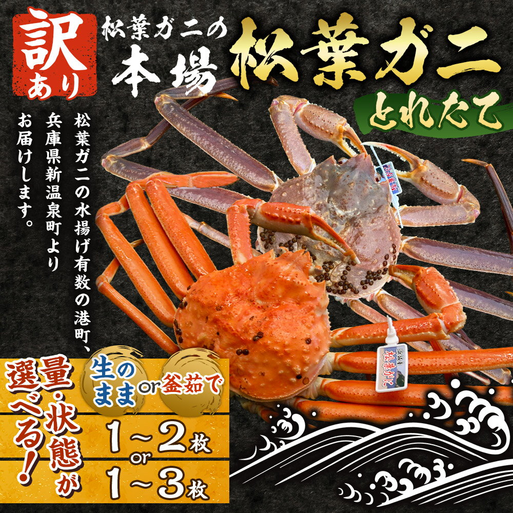 【ふるさと納税】【訳あり】松葉ガニの本場・生/釜茹で 松葉ガニ とれたて(冷蔵) 1~3枚入 蟹 カニ かに 松葉ガニ ズワイガニ 生 釜茹で 蟹味噌 カニミソ 訳あり 訳アリ 兵庫県 新温泉町 送料無料【2025年11月上旬~2026年3月上旬迄発送予定】