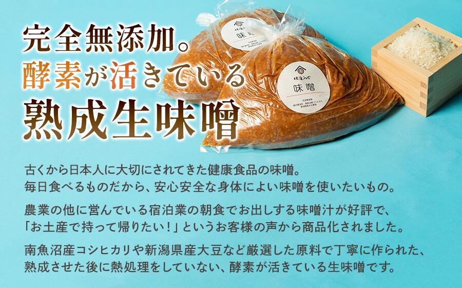 - 【ふるさと納税】完全無添加の熟成生みそ 2kg (1kg×2袋) 味噌汁にも 南魚沼産コシヒカリ100%・新潟県産大豆使用 手作り米ミソ 中屋ふぁーむ【地場産品】