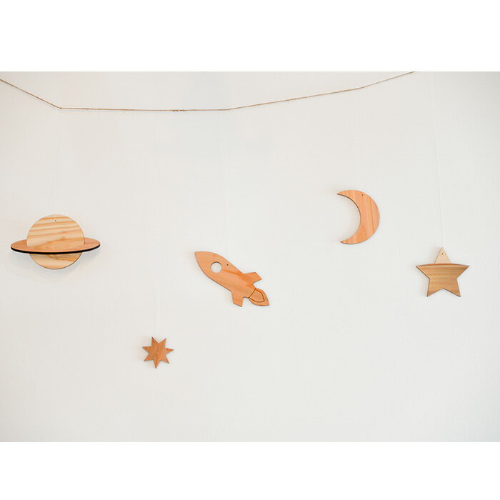 - 【ふるさと納税】No.242 宇宙オーナメント / 飾り インテリア 雑貨 ロケット 土星 三日月 星 木目 無塗装 送料無料 千葉県