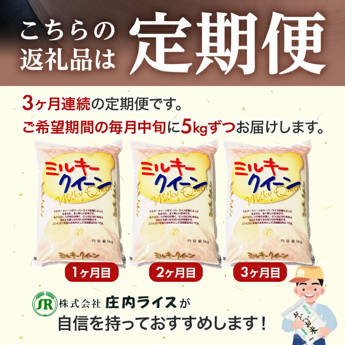- 【ふるさと納税】≪3ヶ月定期便≫ ミルキークイーン 5kg×3ヶ月連続 計15kg 山形県庄内産 ご希望の毎月中旬お届け 東北 遊佐町 庄内地方 庄内平野 米 お米 精米 白米 庄内米 ごはん ご飯 セット 連続定期便