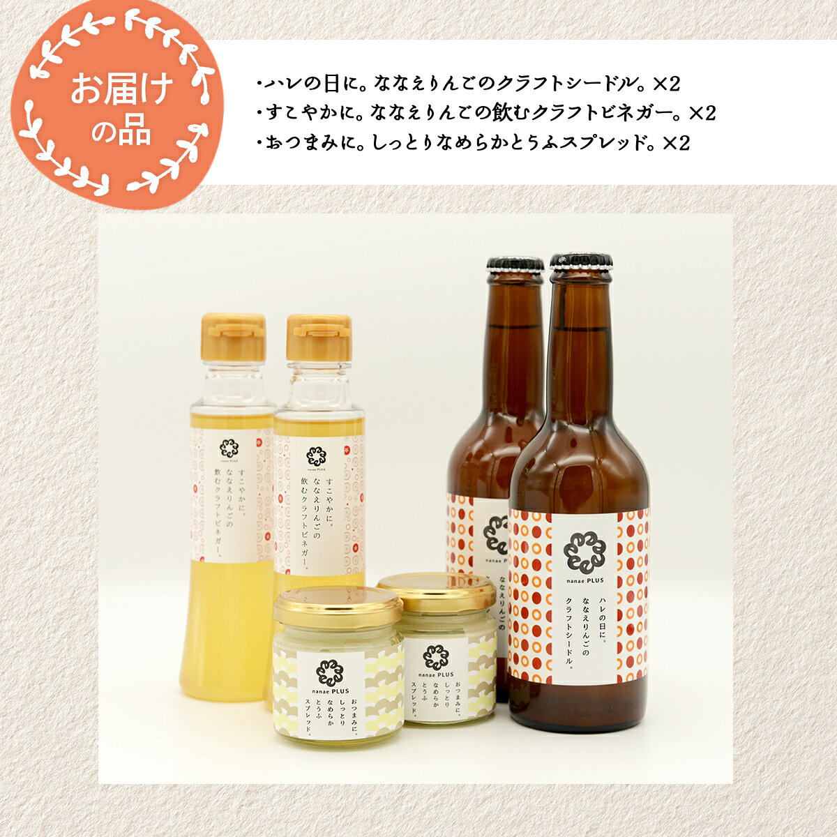 - 【ふるさと納税】【2026年1月中旬より順次発送】道の駅なないろ・ななえ nanae PLUS 商品詰め合わせ(シードル、ビネガー、スプレッド各2個セット) 【 シードル お酒 アルコール ビネガー りんご りんご酢 スプレッド おつまみ 北海道産 北海道 七飯町 送料無料 】 NABD001
