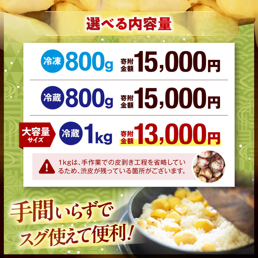 - 【ふるさと納税】【選べる容量・保存方法】【10月上旬から順次発送】ムキ栗 800g~1.0kg(真空パック) 大洲市/沢井青果[AGBN034] 栗 クリ くり 栗ご飯 栗ごはん くだもの 果物 フルーツ ふるーつ 生栗 先行予約 おすすめ 人気 お取り寄せ 送料無料 贈答 ギフト