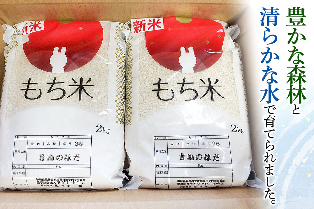 秋田県東成瀬村産 もち米(きぬのはだ )2kg×2袋 餅米