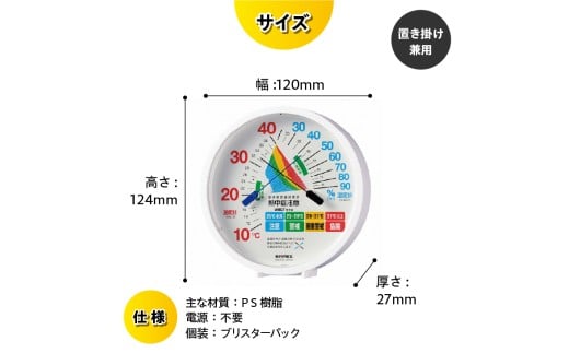 - 環境管理温・湿度計「熱中症注意」 TM-2484W 熱中症対策 温度計 湿度計 暑さ指数 4段階 注意 警戒 厳重警戒 危険 WBGT 健康管理 アナログ式 インテリア 電池不要 置き掛け兼用 [AJ124]