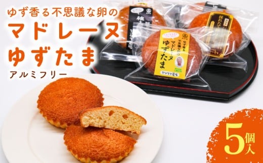 ゆず香る不思議な卵のマドレーヌ ゆずたま 5個入 | ゆずたま 焼き菓子 お菓子 おかし 家庭用 ギフト 包装 スイーツ ゆず 柚子 人気 おすすめ たまご 卵 高知県 南国市
