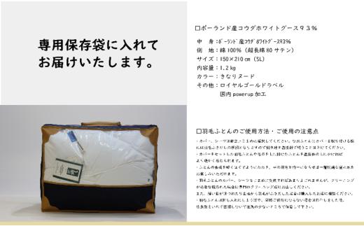 [№5882-0399]国産羽毛ふとん ポーランド産コウダホワイトグース93% 1.2kg