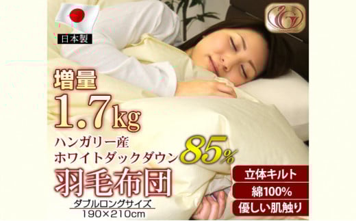 - 羽毛布団【DL(ダブルロング)】ハンガリー産ホワイトダックダウン85% 無地 FAD-0859