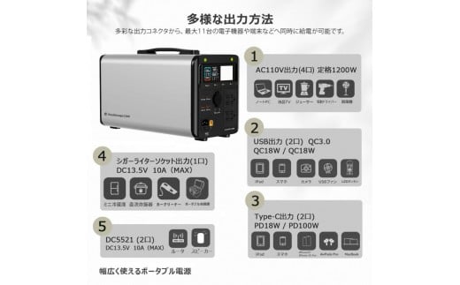 - ポ-タブル電源 1008Wh 出力1200W リン酸鉄リチウム ライト付 EPS機能 SPI-1200AT