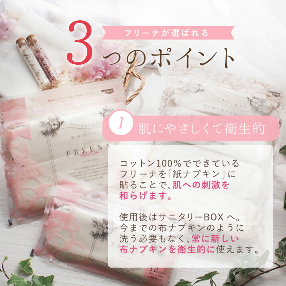 - 【ふるさと納税】使い捨て布ナプキン FREENA フリーナ 布ナプキン (テープ付) 12枚入 | 使い捨て ナプキン 日用品 消耗品 生理用品 綿100% コットン デリケートゾーン 不快感軽減 ふるさと納税 宮城県 白石市 白石【2315701】