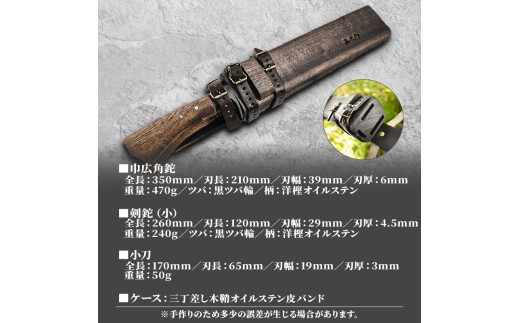 - 晶之作 土佐鍛 山人ver.3(A型) 三丁差セット 巾広角鉈+剣鉈+小刀 | ナイフ キャンプ アウトドア 打刃物 土佐 鉈 剣鉈 なた 職人 山林 狩猟 熊 刃物 薪割り ハンドメイド 釣り 伝統 工芸 高知県 南国市