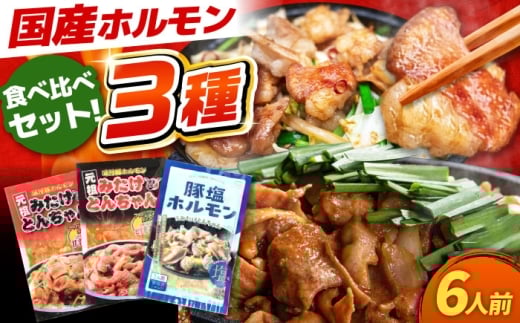 「元祖みたけとんちゃん」甘辛×ピリ辛×豚塩 各1袋(6人前)/ モツ もつ 白モツ ホルモン / 御嵩町 / 藤よし [AVAA056]