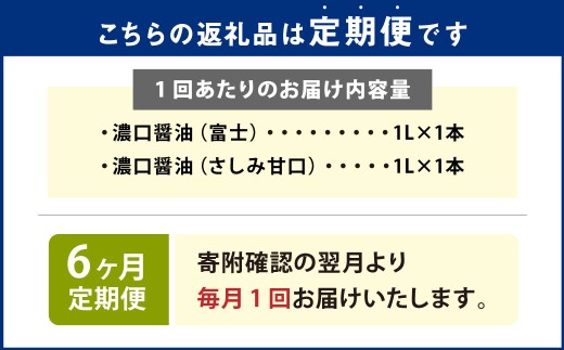 - 【6ヶ月定期便】お醤油2種味比べセット 各1L 計2L 計6回 濃口醤油 富士 さしみ甘口 セット おさしみ醤油 刺し身醤油 料理 しょうゆ 醤油 調味料 濃い口 大分県 九重町