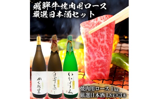 2-2 飛騨牛 焼肉用ロース 1㎏(500g×2) + 厳選日本酒1.8L×3本【岐阜県 可児市 酒 日本酒 飲料 地酒 アルコール 手作り ギフト プレゼント お祝い 肉 牛肉 】