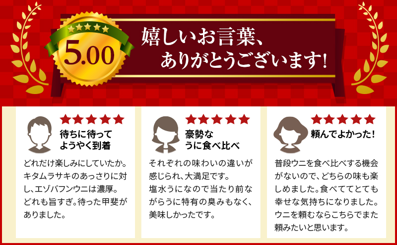 - 北海道礼文島産 ウニの食べ比べセット600g(蝦夷バフンウニ・キタムラサキウニ) 魚貝類 雲丹 うに
