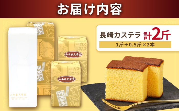 【内閣総理大臣賞・名誉総裁賞受賞】カステラ 1斤+0.5斤×2本 計2斤 / かすてら お菓子 おやつ 長崎かすてら 長崎カステラ / 南島原市 / 山本喜久栄堂[SAL005]