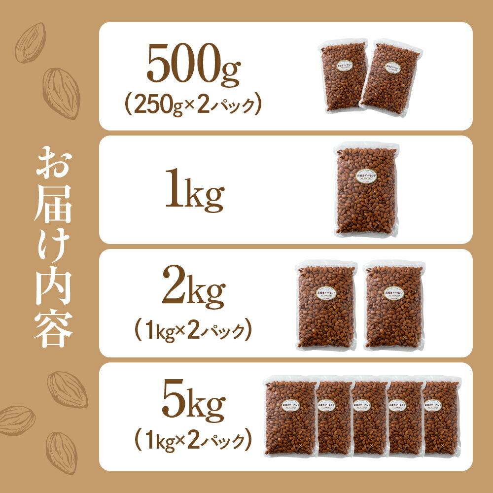 素焼きアーモンドホール 容量が選べる 0.5kg 1kg 1.5kg 2kg ナッツ ドライロースト 素焼きアーモンド 無塩 無油 ビュート種使用 ノンオイル おやつ 間食 おつまみ お取り寄せ 福岡