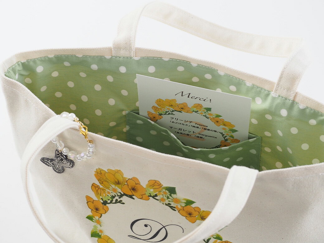 - 【ふるさと納税】 【名入れオーダー】ハナリエ 誕生花とともに心に刻むトートバッグ チャーム付き<選べる誕生花> 誕生日 お祝い プレゼント 化粧ポーチ 小物入れ 花柄岐阜県 大垣市