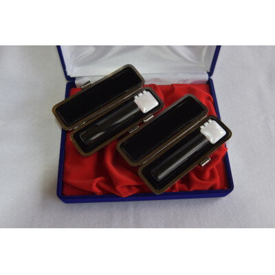 - 【ふるさと納税】手彫り職人が彫った黒水牛印鑑実印16.5mm・銀行印13.5mmの2本セット(男性向け)【配送不可地域:離島】【1312828】
