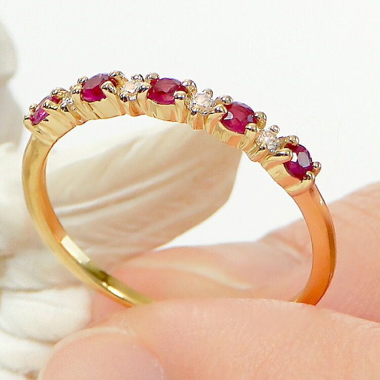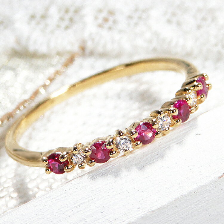 【ふるさと納税】 指輪 K18YG イエローゴールド ルビー ダイヤモンド 0.08ct 5〜16号 ハーフエタニティリング レディース 18金 華奢 重ねづけ【f161-ru-k18yg】 [株式会社オーダーメイドジュエリーメイ 山梨県 韮崎市 20742938] リング アクセサリー ジュエリー アクセ