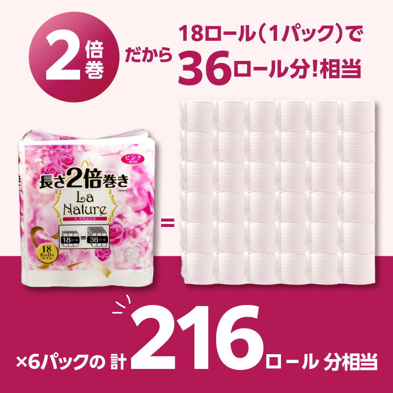 - 【ふるさと納税】トイレットペーパー ダブル 2倍巻 ラ・ナチュール ピンク 18ロール×6パック 108ロール 大容量