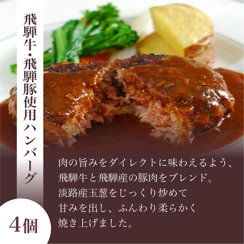 - 【ふるさと納税】キッチン飛騨 飛騨牛・飛騨豚使用 ハンバーグ 4個セット(デミグラスソース付)| レトルト ハンバーグ 惣菜 お手軽 飛騨高山 個包装 冷凍食品 熨斗 のし対応可 飛騨ハム CQ016VP