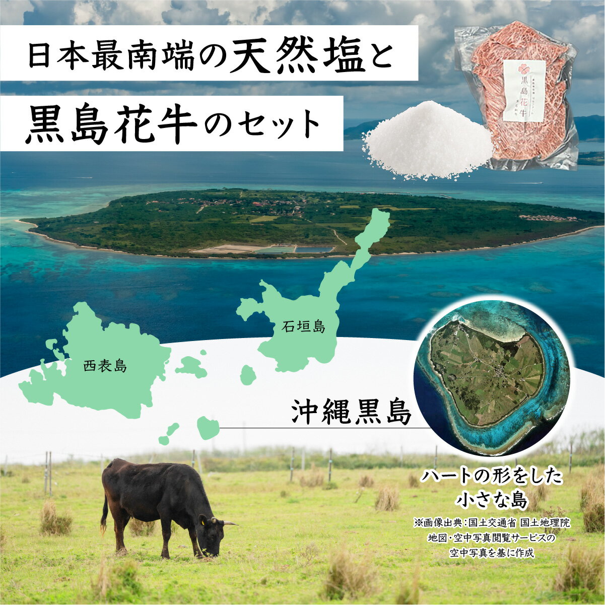 - 【ふるさと納税】【内容量が選べる】黒島花牛 焼肉用 200g×1〜4袋、沖縄黒島の塩50g【牛肉 牛 塩 沖縄】