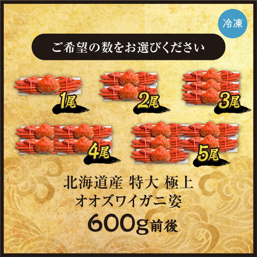 - 【ふるさと納税】 北海道産 特大 極上 オオズワイガニ 姿 【 選べる 数量 】 600g 前後 1尾~5尾 楚蟹 ズワイガニ カニ 1.2kg 1.8kg 2.4kg 3kg ボイル 蟹味噌 お取り寄せ グルメ かにみそ 甲羅 冷凍 国産 魚介 甲殻類 水産 海鮮 厳選 北海道 札幌市