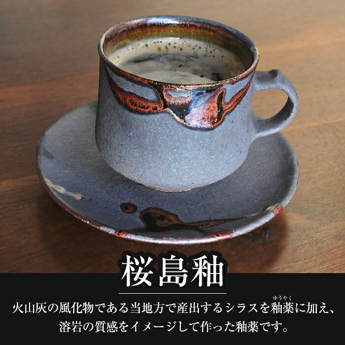 【ふるさと納税】桜島釉 コーヒーカップ&ソーサー1組!珈琲カップ ティーカップ 陶器 食器 焼物 焼き物 【紅葉窯】